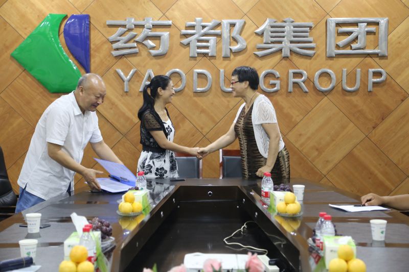 2017年8月6日上午10:00,藥都集團(tuán)與河北大學(xué)藥學(xué)院簽約儀式順利召開,藥都集團(tuán)董事長李曉恩與河北大學(xué)藥學(xué)院院長趙燕燕出席簽約儀式。